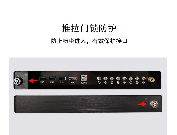 機身保護——獨特的推拉門鎖設計,保護前置按鍵及接口,還能收納白板筆和教鞭;