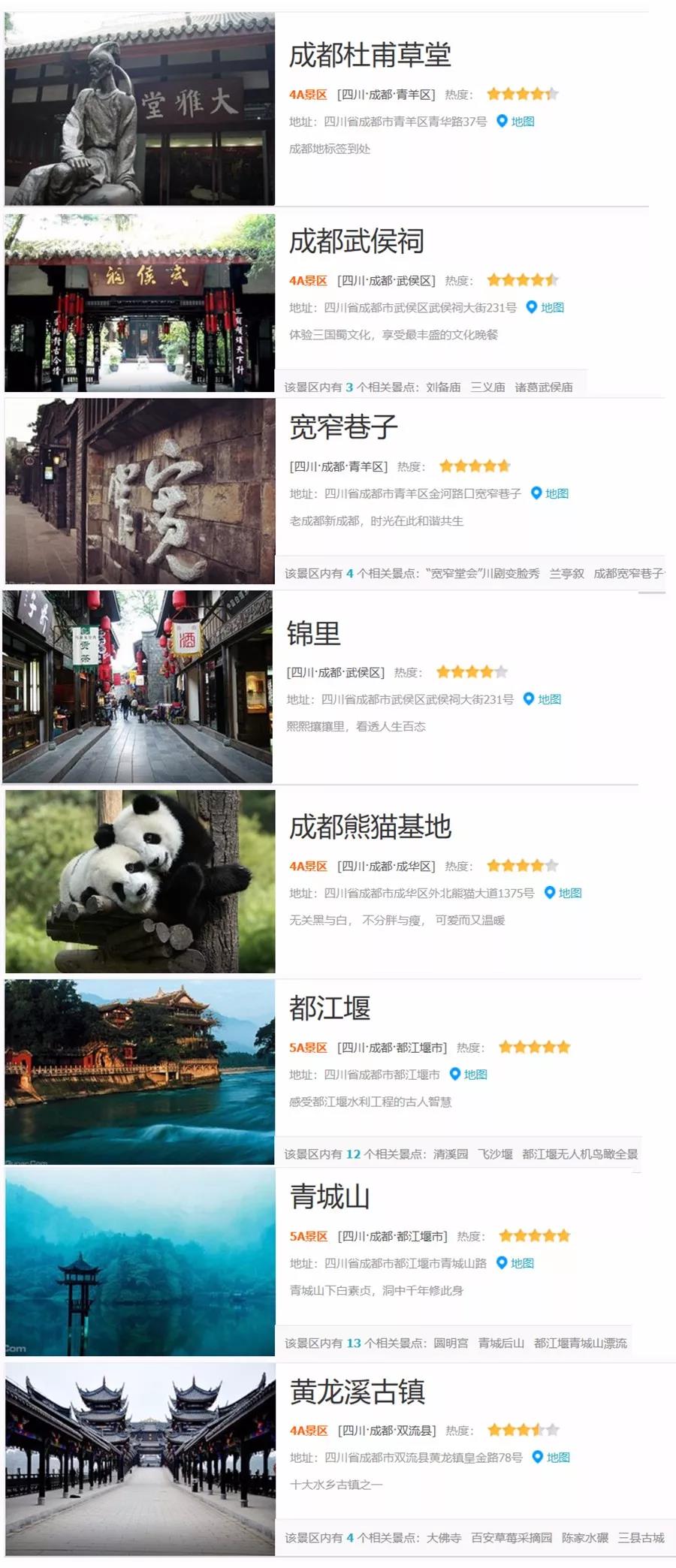 極高的景點,希望給朋友們的成都之行提供方便。