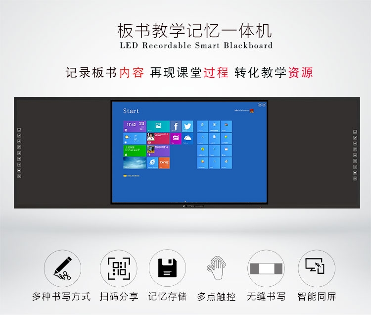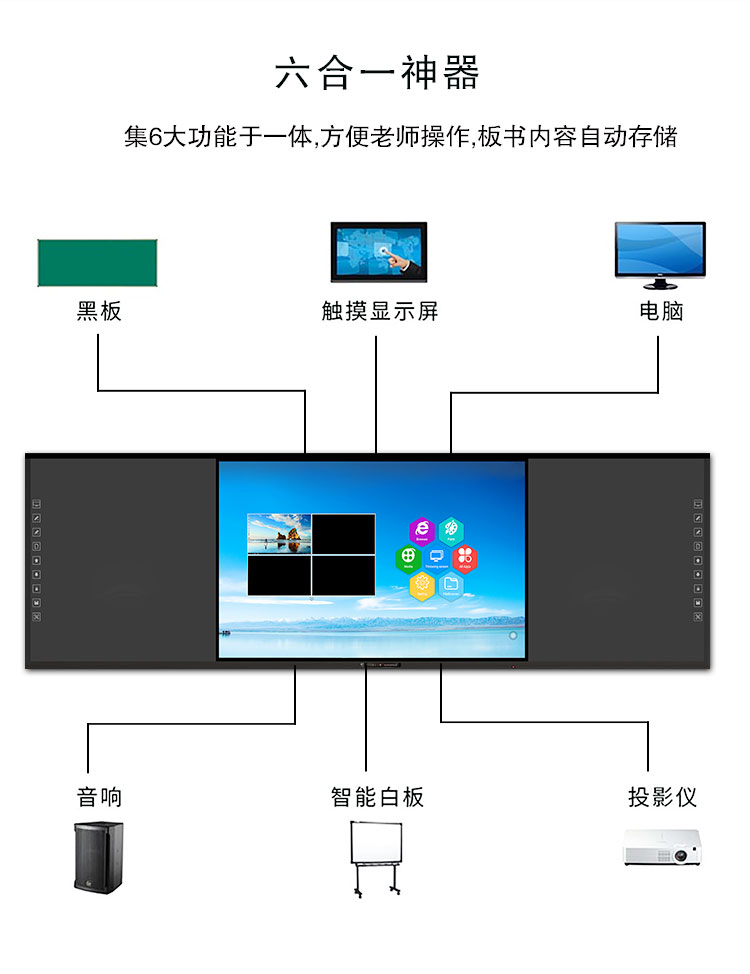 記憶成人看片免费APP-集電腦、音箱、展台、智能中控、白板於一體,采用一體化無縫拚接設計美觀大氣,電控展台方便收納,紅外二十點觸控滿足多人同時書寫,板麵采用冷軋麵板防撞防刮,尺寸擴展性強,滿足不同教學場景需求。